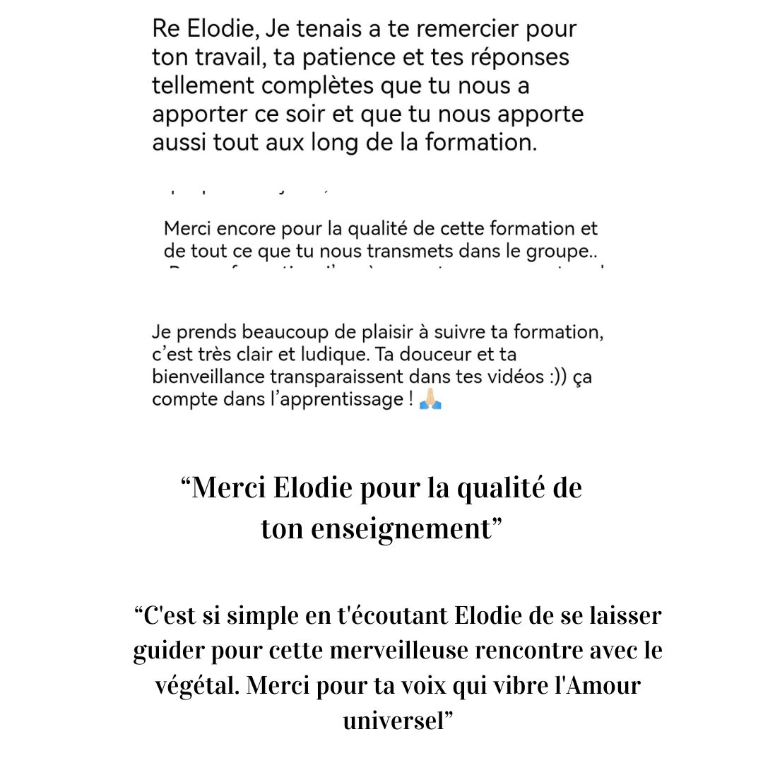 BONUS : une session privée (d'une heure) avec moi pour approfondir ta pratique et répondre à tes questions. Si tu es thérapeute c'est aussi un temps pour t'accompagner à mettre intégrer les Huiles Essentielles dans ta pratique.